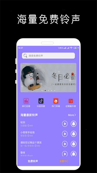 2、所有铃声都免费,好玩好听到根本停不下来。