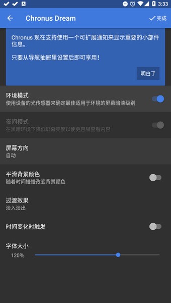 Chronus Pro破解版是一款专门为安卓机主们打造的桌面小组件工具,只需要简单几步就能够将手机打造成自己喜欢的风格。软件已为大家破解了高级功能,各种不同样式的天气和时钟面板都能够自由去使用,用户们也可以按照自己的喜好来选择合适的屏保以及颜色。此外,Chronus还支持显示股票信息,真正为大家带来更便利的手机使用体验。