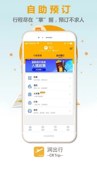 润出行APP官方版是由华润集团推出的一款专为企业商务人士设计的商旅管理软件。它整合了机票、酒店、火车票等多种预订服务,让出差变得轻松高效。无论是查询票务信息还是一键购买,都能快速搞定,还能在线叫车接送,非常方便。
