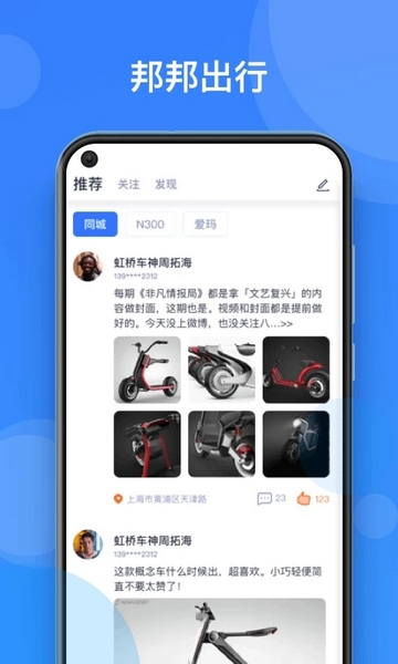 邦邦出行是一款主打电瓶车绑定管理的软件,其功能相当强大,可以支持多种品牌的电瓶车绑定,且通过APP即可实现远程开锁启动等功能,让你出行更高效!不仅如此,更能实时定位车辆所处位置,一键极速寻车,还会实时显示车辆的电量、安防状态、历史轨迹等内容,非常实用!