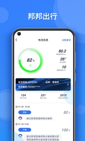 不过,虽然功能强大,我还是有点担心隐私问题。毕竟这些数据都和手机绑定,不知道会不会有泄露的风险?总的来说,邦邦出行确实是一款很不错的电瓶车管理工具,尤其是对那些经常需要借车或者在意车辆安全的人来说,绝对是个神器!