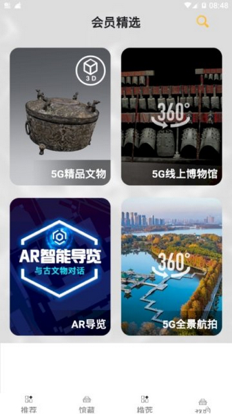 文物三维精品展、5G线上馆、5G全景直播;