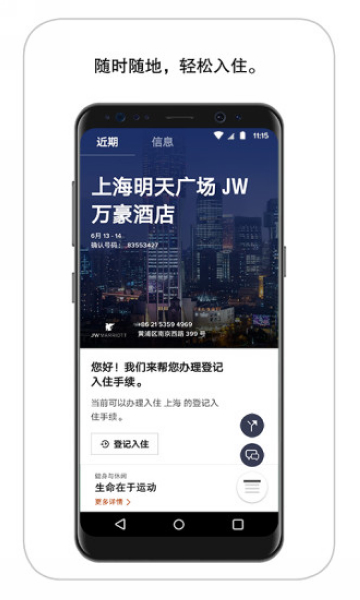 手机钥匙:您可在指定酒店使用您的手机开启房门或探索酒店其他区域