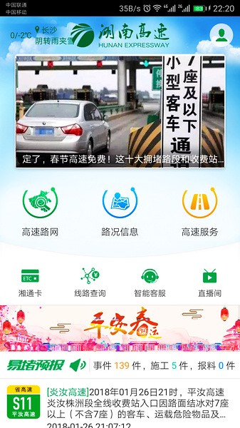 当大家自己驱车出行的时候总是会查看高速的情况,尤其是假期期间大家都会查看哪条高速公路最通畅,这款湖南高速通app就是一款专门为湖南地区的市民们打造的高速服务软件,其中为大家准备了八大板块,涵盖了高速路况信息、高速服务区、线路查询等各种便捷的功能,让大家的出行变得更加轻松简单,同时大家还能一键办理etc服务,让大家上高速更快捷。