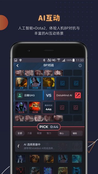 3、AI互动:人工智能+Dota2,体验人机BP对抗与丰富的AI互动场景。