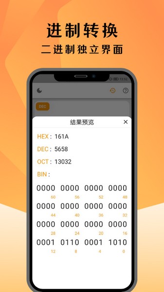 1、二进制的独立界面,让你可以快速的进行计算转换,很方便。