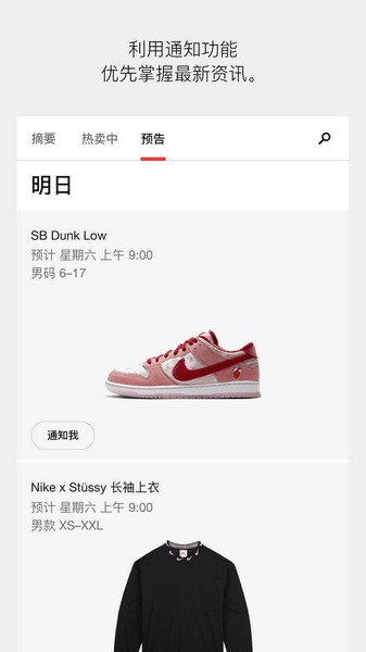 - 预览新品,开启推送通知,抢购钟爱潮流鞋款。