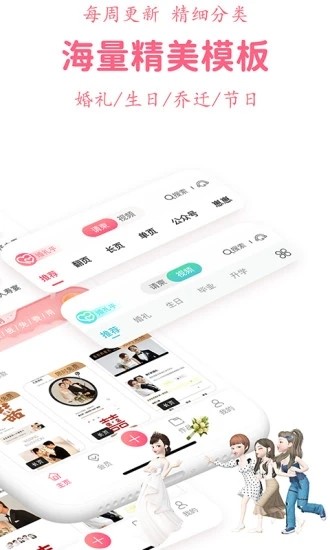 3.精美模板:宝宝相册、周岁请柬、婚礼邀约、生日贺卡等,专业设计师配置动态效果