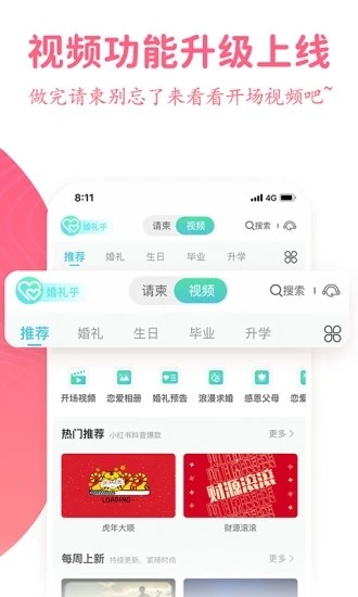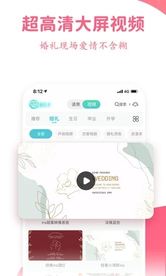 上传视频:支持上传爱情MV,拍摄花絮,在请帖中自由播放.