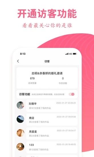 来宾统计:请柬内自带表单功能,收集统计宾客数,方便预知来宾人数,安排宾客酒店等.