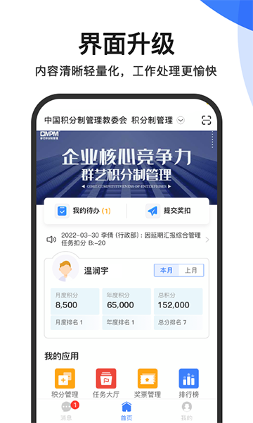 群艺积分app官方版是一款专为企业设计的人力资源管理工具,它通过积分系统量化员工表现,支持奖分和扣分动态记录,帮助企业公平、透明地管理员工绩效。这款软件功能强大,包括积分管理、流程审批、排名展示、奖票生成等功能模块,覆盖了从会议考勤到项目安全的方方面面。你可以随时查看积分详情、申请积分、了解排名,还能通过任务闹钟和考勤系统自动完成考核。