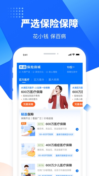 水滴健康精选保障,涵盖住院医疗、意外事故、重大疾病多个方面。只需一部手机,就能在线完成投保与保单管理的全部操作,足不出户就能享受最全面的保障。