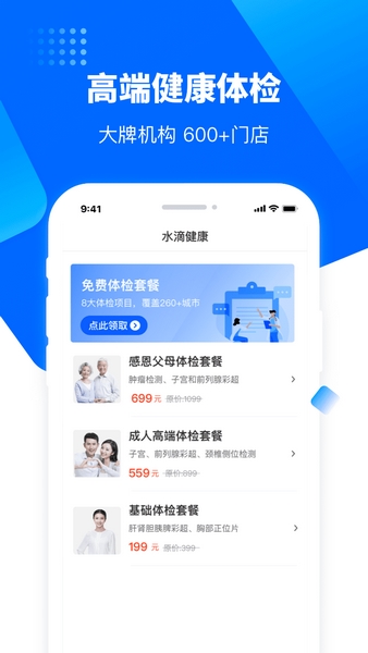 提供覆盖全国600家门店的体检服务,包括美年大健康、爱康、慈铭等知名机构