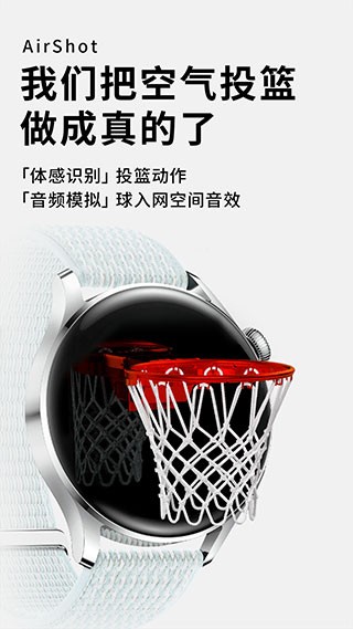 1、根据提示佩戴手表,识别投篮手势动作,模拟真实的空心入网的空间音效。