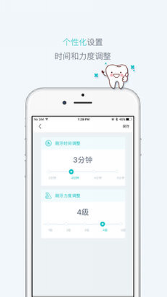 2、刷牙得分:每次使用APP刷牙结束后,通过智能化的数据分析,您将获得本次刷牙的得分情况,刷牙效果一目了然。