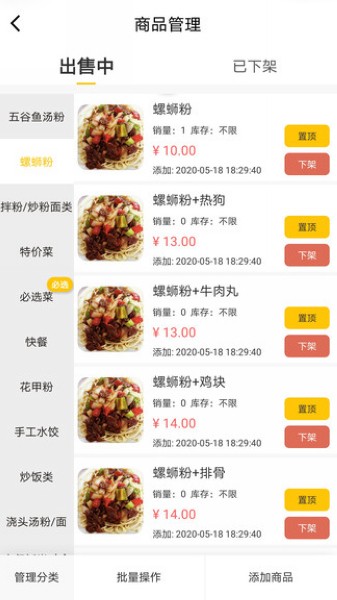 商家可自由编辑店内的菜单信息,如上架、下架以及发布优惠信息;