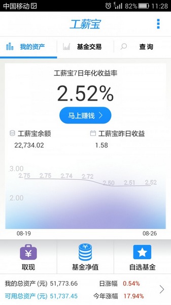 拥有丰富的基金产品,根据收益预计随心选择投资;