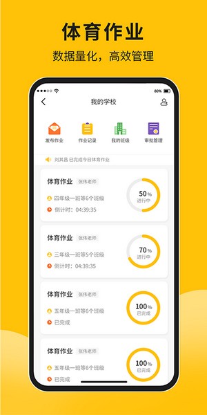 3、【记录运动情况】:帮助教师和教练,记录管理不同学生学员的运动情况,带来更加便捷的管理工具。