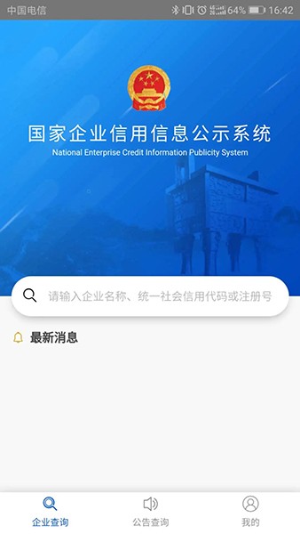 1、查询市场主体信用信息,输入名称或注册号进行查询。系统支持按名称的关键词模糊查询,一次*多显示50条记录。对于无效的查询条件,将不会显示查询结果