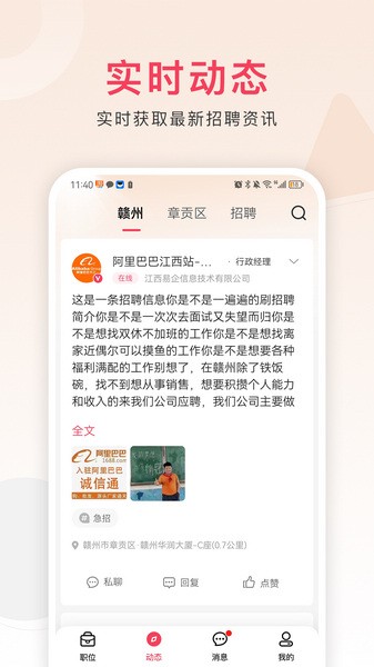 我觉得这个app最大的优点是信息真实可靠,所有职位都是人工审核过的,避免了虚假信息的困扰。特别是同城动态功能,让找工作变得更有互动感,还能和附近的朋友交流经验。智能推荐岗位也挺方便的,节省了很多找工作的精力。