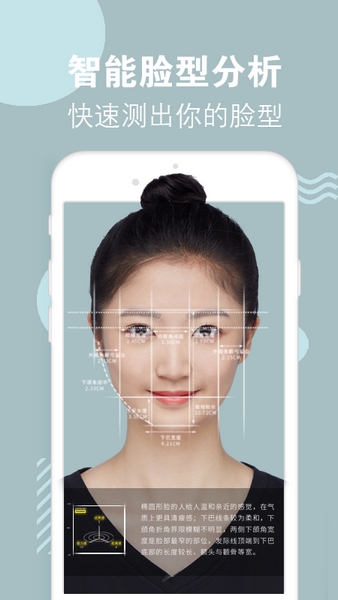 脸型分析:通过智能AI,大数据分析脸型,使用此功能能测试设别脸型的分类,分析脸型特征,专业数据解决发型设计与脸型搭配问题。