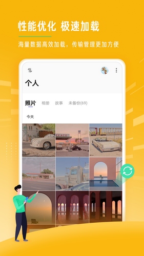 时光相册极速版是一款安卓图片备份App,该应用中用户能快速对相册内图片上传到云端,从而有效的备份照片,保护你的数据安全,同时在云端可以很好的将图片进行分类,创建时光照片电影,在你回忆起旧时光时,能马上找到照片查看。