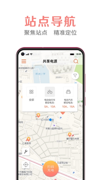 PPS共享电源 是一款集充电控制、电桩寻找、预约充电、在线充值付款的APP。为电动单车和电动汽车车主提供充电端&充电桩位置、数量、类型、状态等信息服务,及通过扫描二维码、输入编码启动充电。