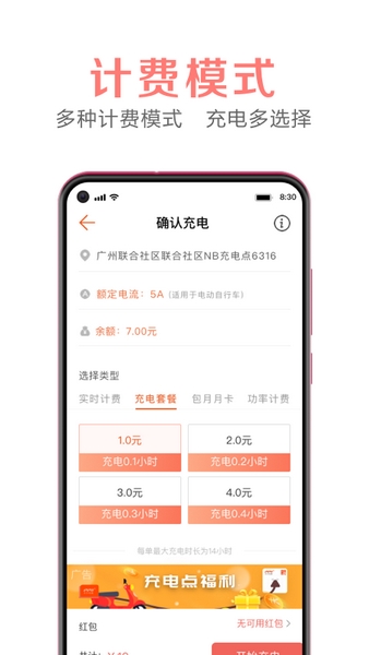1、应用支持:根据充电端&充电桩输出配置分别支持电动单车、电动汽车的扫码充电;