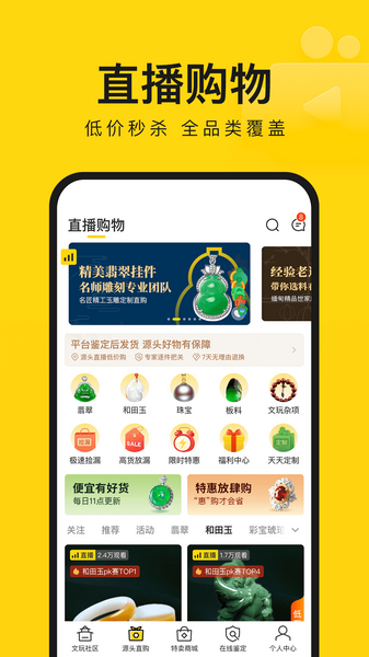 打造玉石珠宝文玩交流新社区,集鉴定师、商家、爱好者与发烧友共聚一堂。让你的玉石文玩等宝贝与大咖无隔阂交流和展示;社区对玉石文玩进行分类展示,宝友可以通过专属客服便捷淘到自己心仪的宝贝;不仅可以天天捡漏,客服还会帮你贴心砍价呦。