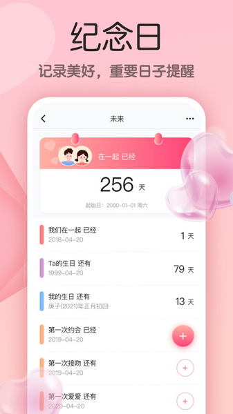 - 纪念日:你和他的生日、恋爱纪念日,约会、旅行记录提醒;