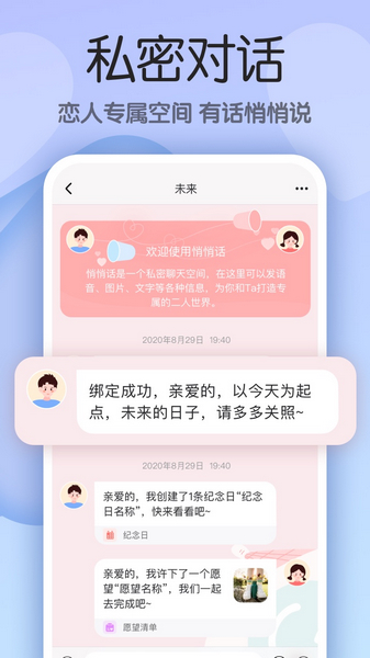 - 悄悄话:传递爱的讯息,聊天加密处理,甜言蜜语悄悄说;