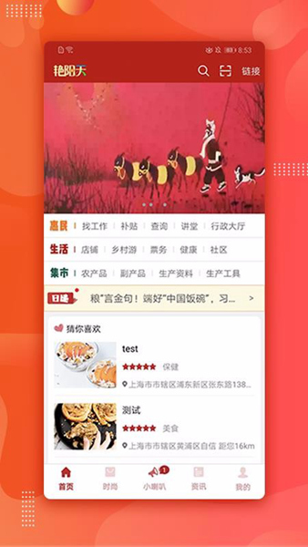 艳阳天这款软件主要是为农村生活服务设计的,功能挺全面。它不仅有农产品交易、旅游资讯、社区聊天这些服务,还能帮忙找工作、查补贴、看农业新闻,方便了不少农民朋友。软件里卖的东西也很多,米面粮油、水果蔬菜啥的都有,特别接地气。