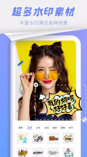 这个APP的一大亮点是素材免费,拼图模板和各种贴纸都能随便用,完全不用担心资源不够。界面设计也很简洁清爽,编辑起来特别顺手。尤其是水印功能,不仅支持批量添加,还能提取和去除水印,简直太实用了!对于喜欢在社交媒体分享美图的人来说,这个工具绝对不能错过。