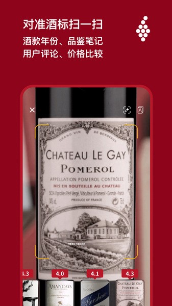 1、拍酒标,查红酒价格和评分: