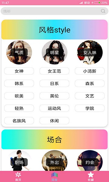 2、点击百变,这里有各种穿搭风格任你挑选,还有各种场合穿搭推荐;