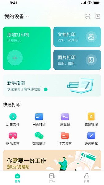 最让我觉得方便的是它的试卷打印功能,特别是对于学生家长来说,省去了去打印店的时间和费用。软件里有很多学习资料和商业文档模板,完全能满足日常需求。而且连接打印机也很简单,打开WiFi或热点就能自动搜索设备,操作起来几乎零门槛。