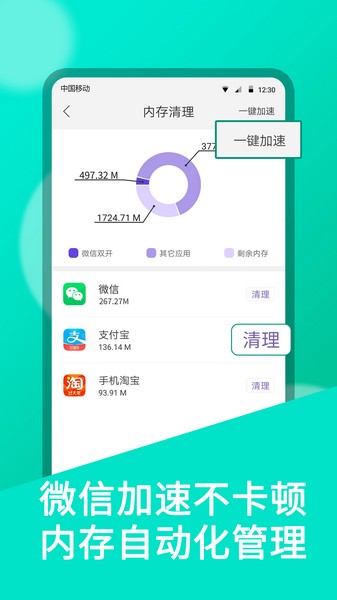 一部手机两个账号同时在线,支持对社交、电商、游戏、娱乐等几乎所有应用双开,分身体验与官方一模一样,每个分身应用运行互不影响,不占内存,收发消息不延迟。