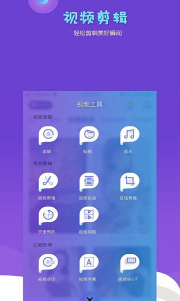 转场、分割、快放、慢放、贴图、音乐剪辑,多种剪辑效果为你的视频增光添彩