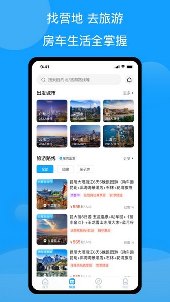 租车自驾、跟团旅行、预定营地、轻松出行;