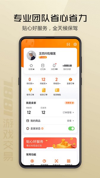 7881游戏交易app端是一款专为手机游戏玩家设计的综合游戏交易软件。由南京锐扬软件科技有限公司精心打造,旨在成为中国最受欢迎的电子商务交易平台,为广大玩家提供便捷的游戏交易和数字产品购买体验。这款应用囊括了众多热门网络游戏,包括蜀门、王者荣耀、和平精英、地下城与勇士等,为玩家提供了丰富的选择。用户可以在平台上进行账号交易、金币交易、游戏代练、游戏币充值、游戏账号出售和账号估价等多项服务。不论是买卖游戏账号还是获取游戏内的虚拟物品,都能在这里方便快捷地完成。