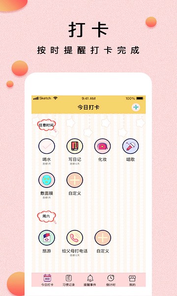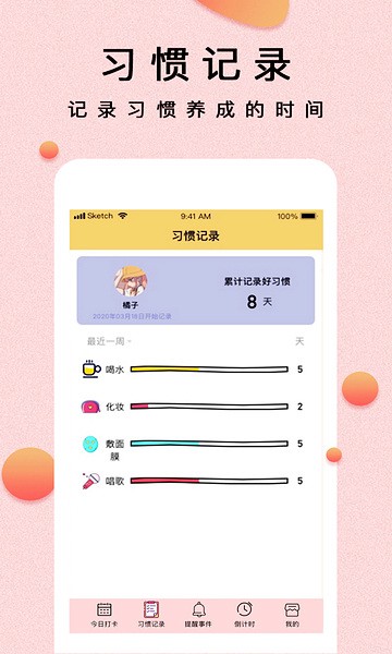4、习惯养成:记录自己每天完成了什么常见的事情,对自己每日完成事项进行打卡