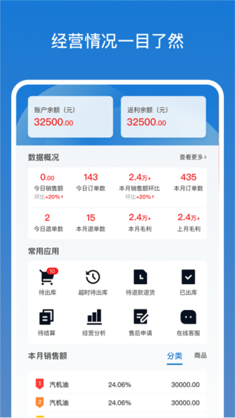 5、提供经营概况版块,让用户看到详细的店铺利润和销售额变化情况,掌握店铺营收趋势;