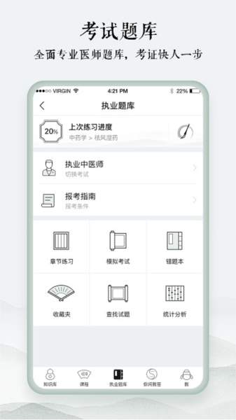 中医通app是一个学中医的好帮手,里面有很多资源和工具,非常适合想要学习中医或者准备考试的人用。它里面有丰富的知识库,包括各种中医基础理论、经典书籍和趣味学习方法。还有执业题库,涵盖多个考试类型,每道题都有详细的解析,还能搜索相关知识点,模拟考试也很方便。