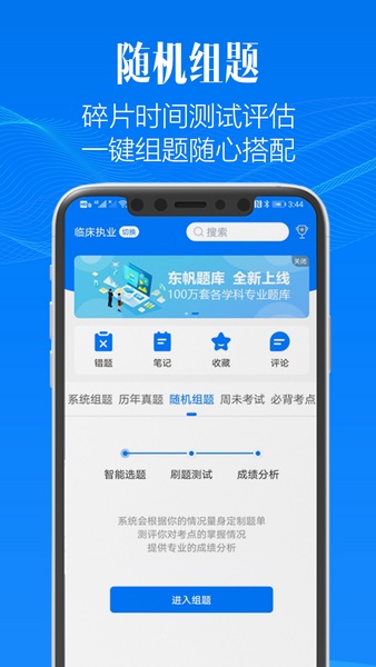 运用软件中提供的随机组题工具,让考生能够在线练习试题检测自己的考试成绩。