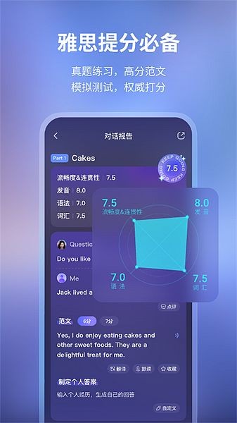 3、提供对话分数及完整对话报告,帮助快速提升口语分数