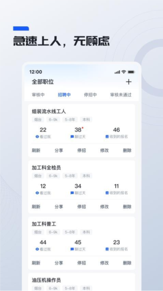 我感觉这个应用对工厂老板来说真的挺方便的,特别是能随时更新职位信息和筛选功能,省了很多时间和精力。而且平台还会审核企业资质,招聘信息可靠,安全性也不错。如果你需要招工或者找普工岗位,这个软件应该是个不错的选择!