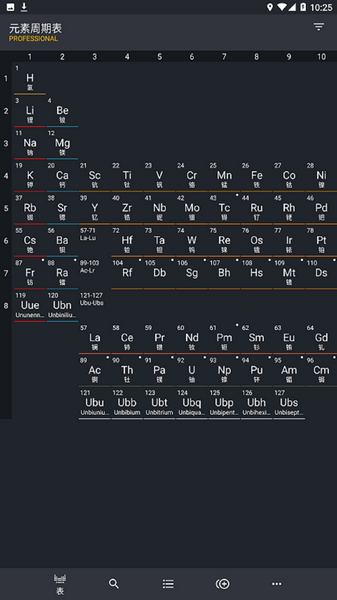 软件会在启动界面显示整个周期表。该表以国际纯应用化学联合会(IUPAC)批准的长表为核心。除了化学元素周期表外,还可以使用溶解度表,是一款非常不错的元素周期表学习软件。