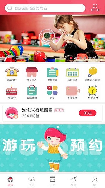 1、生日会:泡泡米为所有孩子打造的生活派对服务,只要过生日的孩子都可以获得平台的生日祝福;