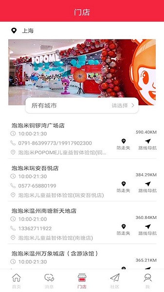 4、门店自动定位,通过地图限时全国的实体门店位置,用户可以选择离自己最近的门店;