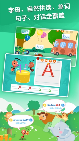 欢快的节拍,丰富的动画,通过词汇掌握字母发音规律,轻松掌握拼读;